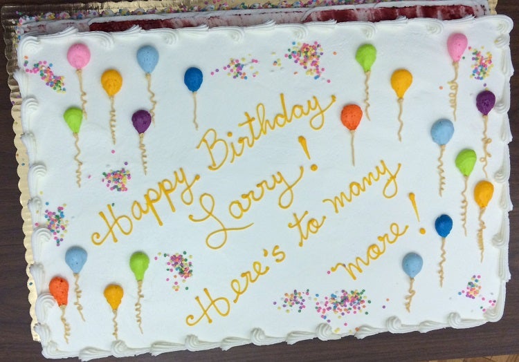 Of course, no birthday party is complete without a cake. After a few words from producer Judith Siers-Poisson and Larry, everyone enjoyed a sweet treat. Nothing, and no one, is as sweet as Larry, though.
