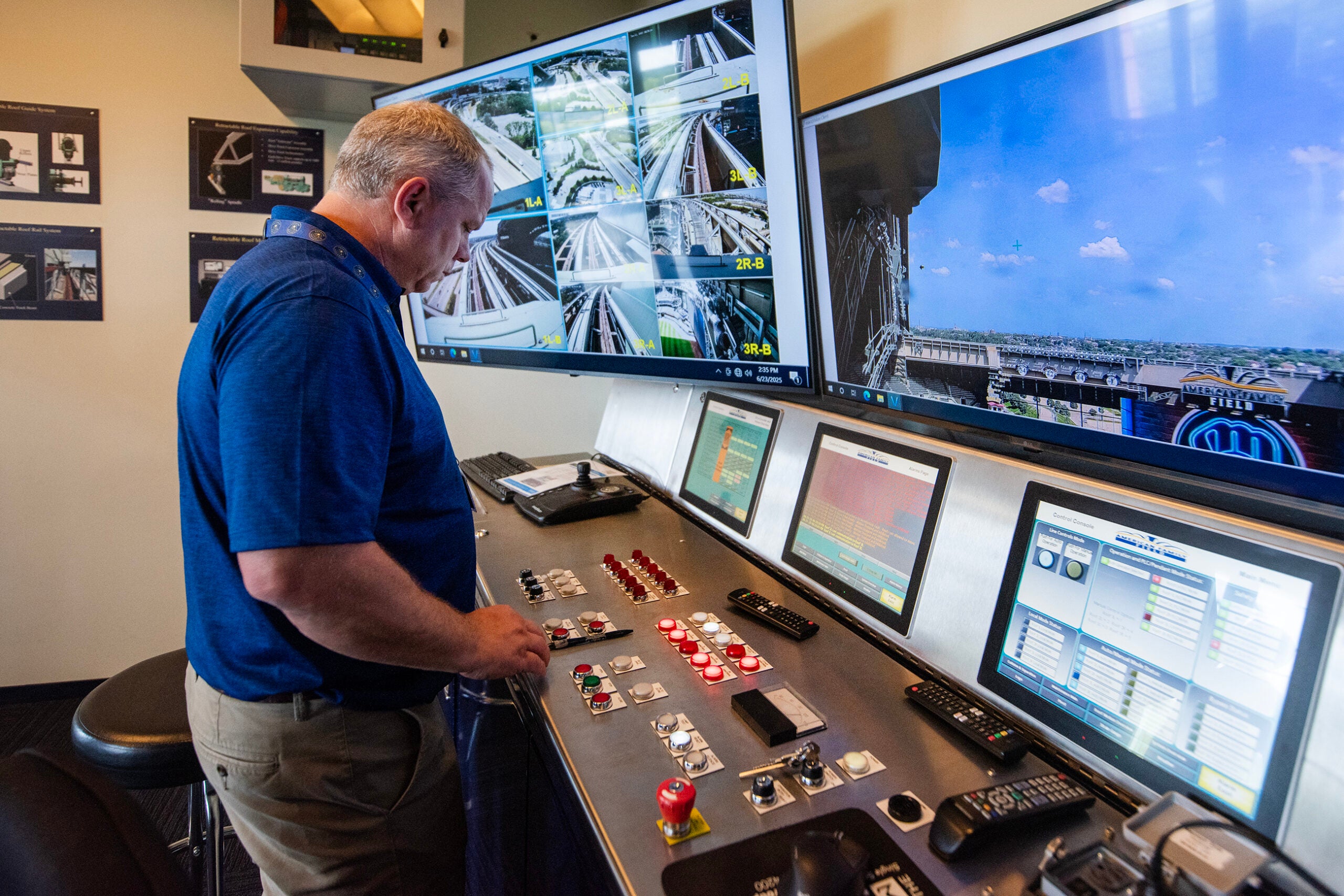 Brockman is one of a few people who actually presses the button that moves the structure. Before he pushes that button, he said he makes sure any contractors on the roof are aware of what’s about to happen.