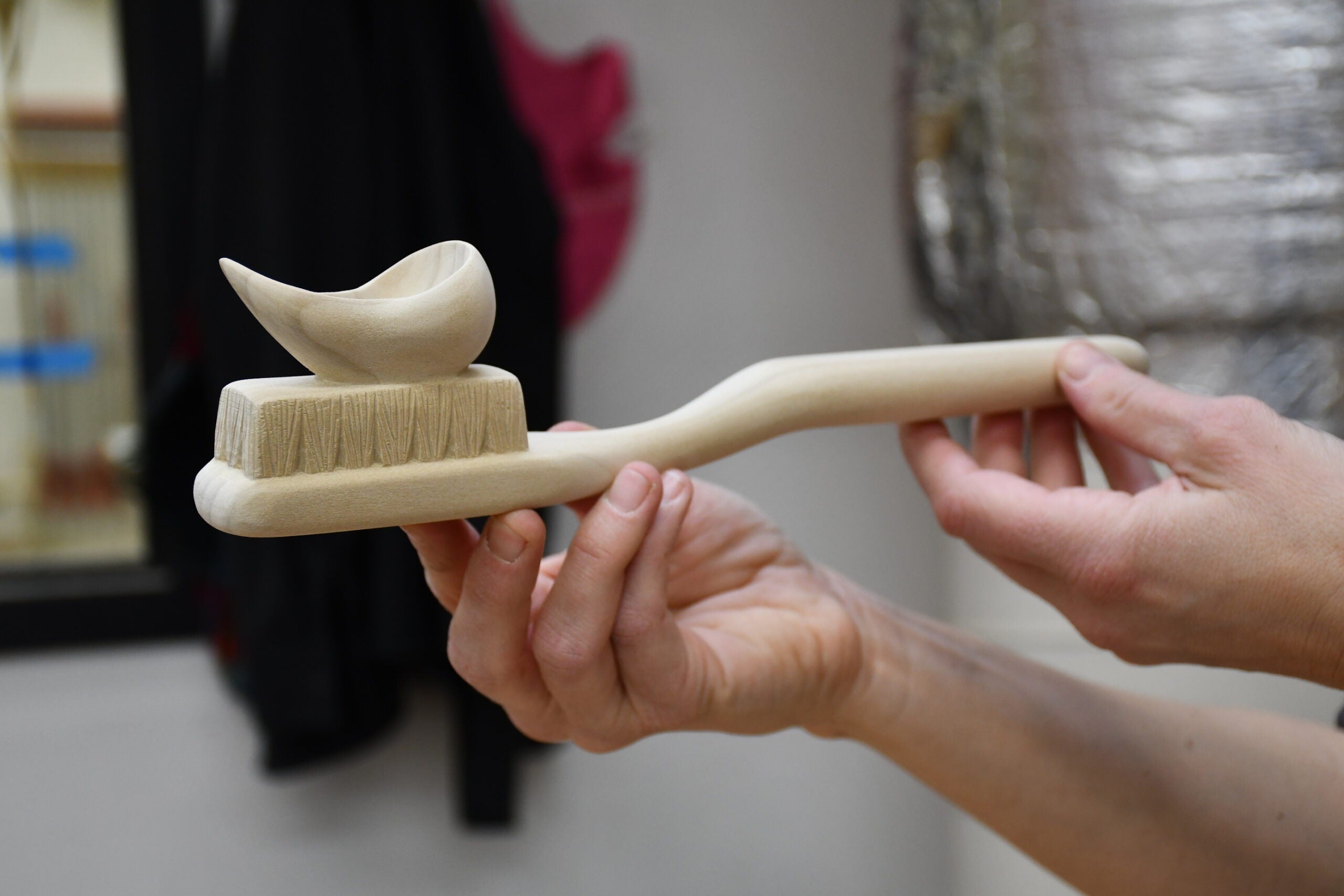 “A very traditional carving project in woodworking is a spoon. It’s got a concave. You use one set of tools for that. It’s got a handle form. You use a different set of tools for that,” she said. “With the ‘not a spoon’ project, I want them to be able to do both of those things, but I also want them to bring in their artistic practice.”