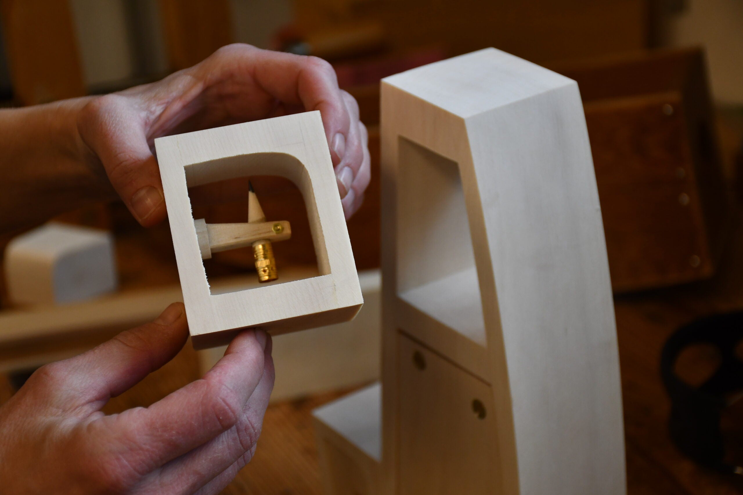 It’s about the carve, the slow movement and the machines. During a project, she said her brain tunes out, leaving her hands and eyes alone to communicate. She calls it the “language of woodworking.”