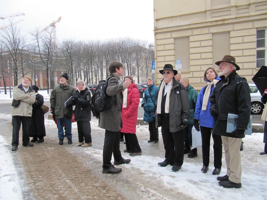Our last full day. We did a walking tour of central Berlin, including some Third Reich sights, such as the memorial to the 1933 Nazi book-burning in the Beberplatz in front of Humboldt University. Gabe brought the memorial by Micha Ullman alive for us, explaining its symbolism and imagery. The famous words by Heinrich Heine are engraved on it as well, “Where they burn books, they ultimately burn people.”