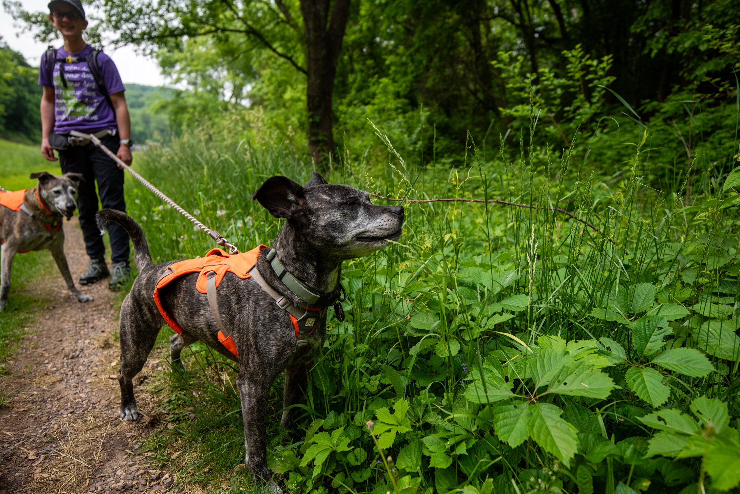 And back in the parking lot, she had one more safety tip: “I love to talk about tick checks.” The tiny creatures can carry Lyme disease, and both people and dogs can unknowingly bring them home after a day in the woods.