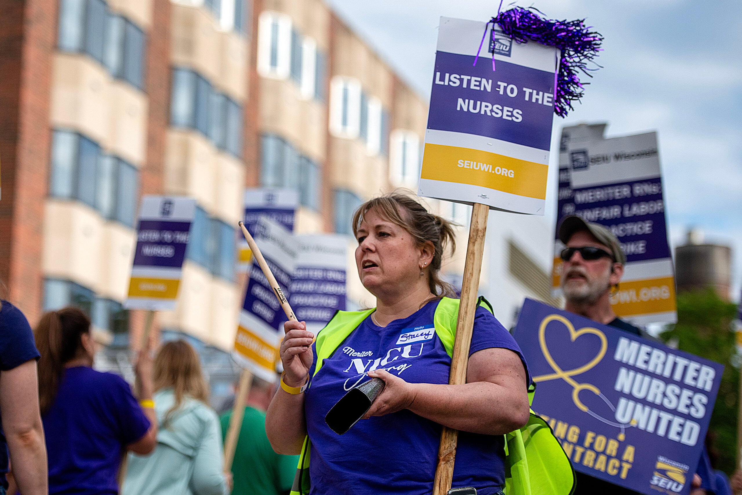 “The problems that we’re facing today between staffing and fair compensation, and just safety for the nurses as a whole, as far as security — that’s what has me out here today,” she told WPR on Tuesday. “It’s lacking.”