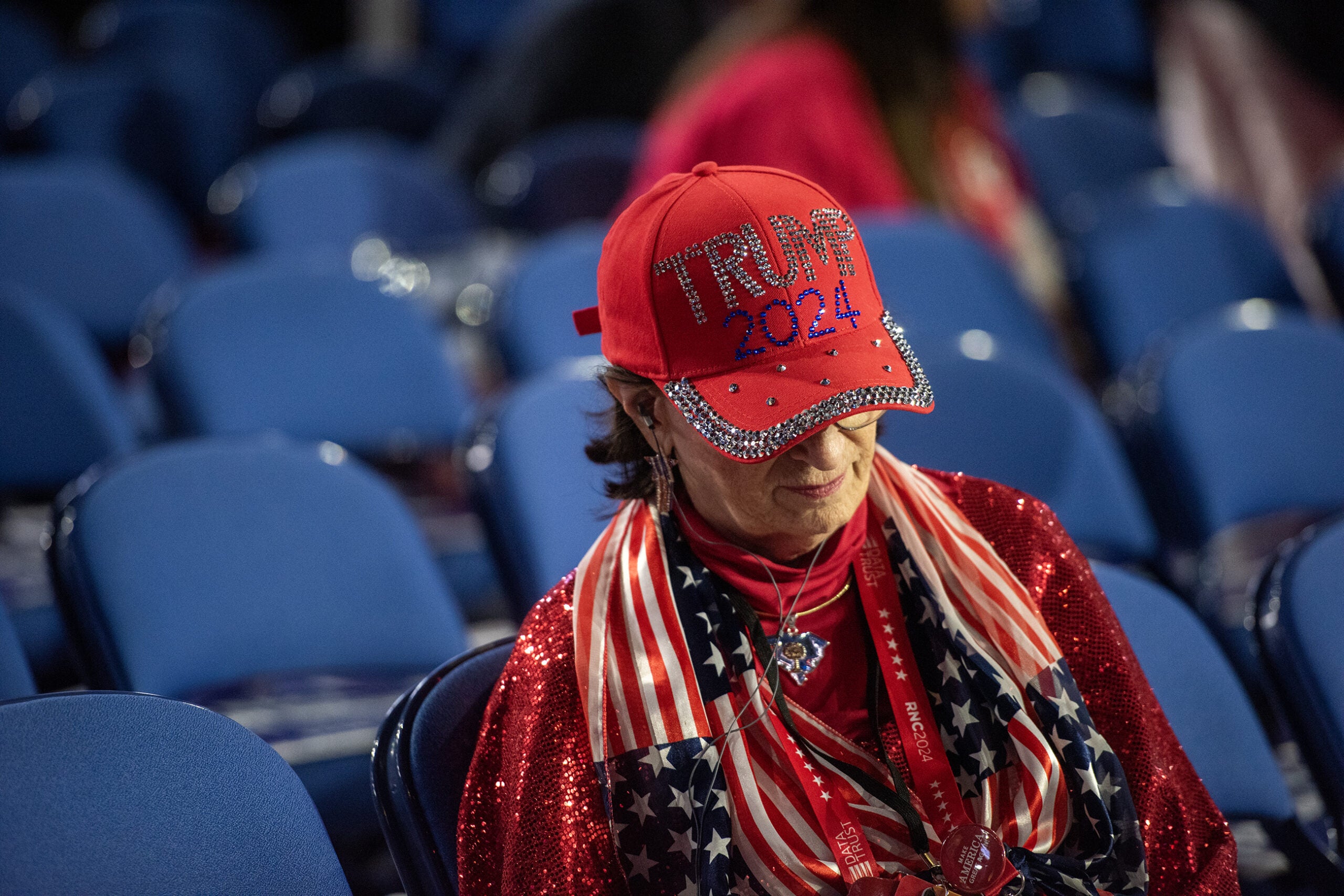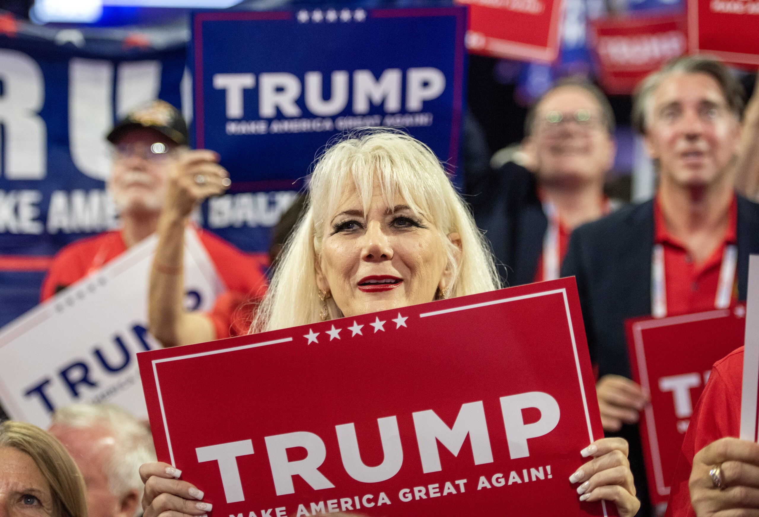Former President Donald Trump stands with his family on stage after his speech Thursday, July 18, 2024, at the Fiserv Forum in Milwaukee, Wis. Angela Major/WPRFormer President Donald Trump speaks at the RNC on Thursday, July 18, 2024, at the Fiserv Forum in Milwaukee, Wis. Angela Major/WPRWisconsin delegates dance with signs before the final day of the RNC on Thursday, July 18, 2024, at the Fiserv Forum in Milwaukee, Wis. Angela Major/WPRAn RNC attendee wears a hat in support of former President Donald Trump during the RNC on Thursday, July 18, 2024, at the Fiserv Forum in Milwaukee, Wis. Angela Major/WPRKid Rock performs at the RNC before former President Donald Trump’s speech Thursday, July 18, 2024, at the Fiserv Forum in Milwaukee, Wis. Angela Major/WPRFormer President Donald Trump shakes hands with Senate candidate Eric Hovde on Thursday, July 18, 2024, at the Fiserv Forum in Milwaukee, Wis. Angela Major/WPRFormer wrestler Hulk Hogan rips his shirt as he endorses Former President Donald Trump on stage at the RNC on Thursday, July 18, 2024, at the Fiserv Forum in Milwaukee, Wis. Angela Major/WPRRock County resident and co-founder of ABC Supply Diane Hendricks walks on stage before speaking at the RNC on Thursday, July 18, 2024, at the Fiserv Forum in Milwaukee, Wis. Angela Major/WPRFormer President Donald Trump Thursday, July 18, 2024, at the Fiserv Forum in Milwaukee, Wis. Angela Major/WPRFormer President Donald Trump smiles after giving a speech at the RNC on Thursday, July 18, 2024, at the Fiserv Forum in Milwaukee, Wis. Angela Major/WPRFormer President Donald Trump and his vice presidential nominee JD Vance stand together in the stands during the second day of the RNC on Tuesday, July 16, 2024, at the Fiserv Forum in Milwaukee, Wis. Angela Major/WPRMembers of the Florida delegation sing and dance as live music plays at the RNC on Monday, July 15, 2024, at the Fiserv Forum in Milwaukee, Wis. Angela Major/WPRSigns are distributed among RNC attendees Monday, July 15, 2024, at the Fiserv Forum in Milwaukee, Wis. Angela Major/WPRSen. Ron Johnson speaks at the RNC on Monday, July 15, 2024, at the Fiserv Forum in Milwaukee, Wis. Angela Major/WPRAsayca Noblin, from Milwaukee, writes on a sign as protesters to the Republican National Convention congregate in Red Arrow Park in Milwaukee. This is the first protest for Noblin, who said she cares about LGBTQ issues and Palestine. “I don’t want Trump here,” she said. Angela Major/WPRProtesters hold a banner as they march from Red Arrow Park to an area in view of the Fiserv Forum, where the Republican National Convention is being held, on Monday, July 15, 2024, in Milwaukee, Wis. Angela Major/WPRAnti-Trump protesters march through the streets of Milwaukee on the first day of the RNC on Monday, July 15, 2024, in Milwaukee, Wis. Angela Major/WPRAn anti-abortion protest group directs chants at the anti-Trump protest gathered in Red Arrow Park during the first day of the RNC on Monday, July 15, 2024, in Milwaukee, Wis. Angela Major/WPREdward X. Young of New Jersey wears a shirt featuring Donald Trump’s “fight, fight, fight” chant days after the former president was injured by a gunman Wednesday, July 17, 2024, outside the Fiserv Forum in Milwaukee, Wis. He said a Wisconsin delegate sold it to him at a party. Angela Major/WPRFormer Deputy Assistant to former President Donald Trump Sebastian Gorka, left, takes a selfie with Corey Lewandowski, right, on Wednesday, July 17, 2024, during the third day of the Republican National Convention in Milwaukee, Wis. Angela Major/WPRAttendees dance to live music during the second day of the RNC on Tuesday, July 16, 2024, at the Fiserv Forum in Milwaukee, Wis. Angela Major/WPRSenate Candidate Eric Hovde speaks during the second day of the RNC on Tuesday, July 16, 2024, at the Fiserv Forum in Milwaukee, Wis. Angela Major/WPRNational Committeewoman for the Republican Party of New Hampshire Juliana Bergeron dances with other members of the New Hampshire delegation during the RNC on Monday, July 15, 2024, at the Fiserv Forum in Milwaukee, Wis. Angela Major/WPRWisconsin Assembly Majority Leader Tyler August stands with the Wisconsin delegation during the second day of the RNC on Tuesday, July 16, 2024, at the Fiserv Forum in Milwaukee, Wis. Angela Major/WPRRNC attendees hold signs during the second day of the RNC on Tuesday, July 16, 2024, at the Fiserv Forum in Milwaukee, Wis. Angela Major/WPRHouse Speaker Mike Johnson speaks during the second day of the RNC on Tuesday, July 16, 2024, at the Fiserv Forum in Milwaukee, Wis. Angela Major/WPRFormer Wisconsin Governor Scott Walker mingles at the RNC on Monday, July 15, 2024, at the Fiserv Forum in Milwaukee, Wis. Angela Major/WPRBabydog, West Virginia Gov. Jim Justice’s dog, appeared on stage alongside the governor as he spoke during the second day of the RNC on Tuesday, July 16, 2024, at the Fiserv Forum in Milwaukee, Wis. Angela Major/WPRRep. Bryan Steil stands with the Wisconsin delegation during the second day of the RNC on Tuesday, July 16, 2024, at the Fiserv Forum in Milwaukee, Wis. Angela Major/WPRArkansas Gov. Sarah Huckabee Sanders, left, is interviewed Wednesday, July 17, 2024, outside the Fiserv Forum in Milwaukee, Wis. Angela Major/WPRAndreina Patilliet, chairwoman of the Republican Party of Rock County, center, smiles during the second day of the RNC on Tuesday, July 16, 2024, at the Fiserv Forum in Milwaukee, Wis. Angela Major/WPRMembers of the Texas delegation pose for a photo Wednesday, July 17, 2024, outside the Fiserv Forum in Milwaukee, Wis. Angela Major/WPR