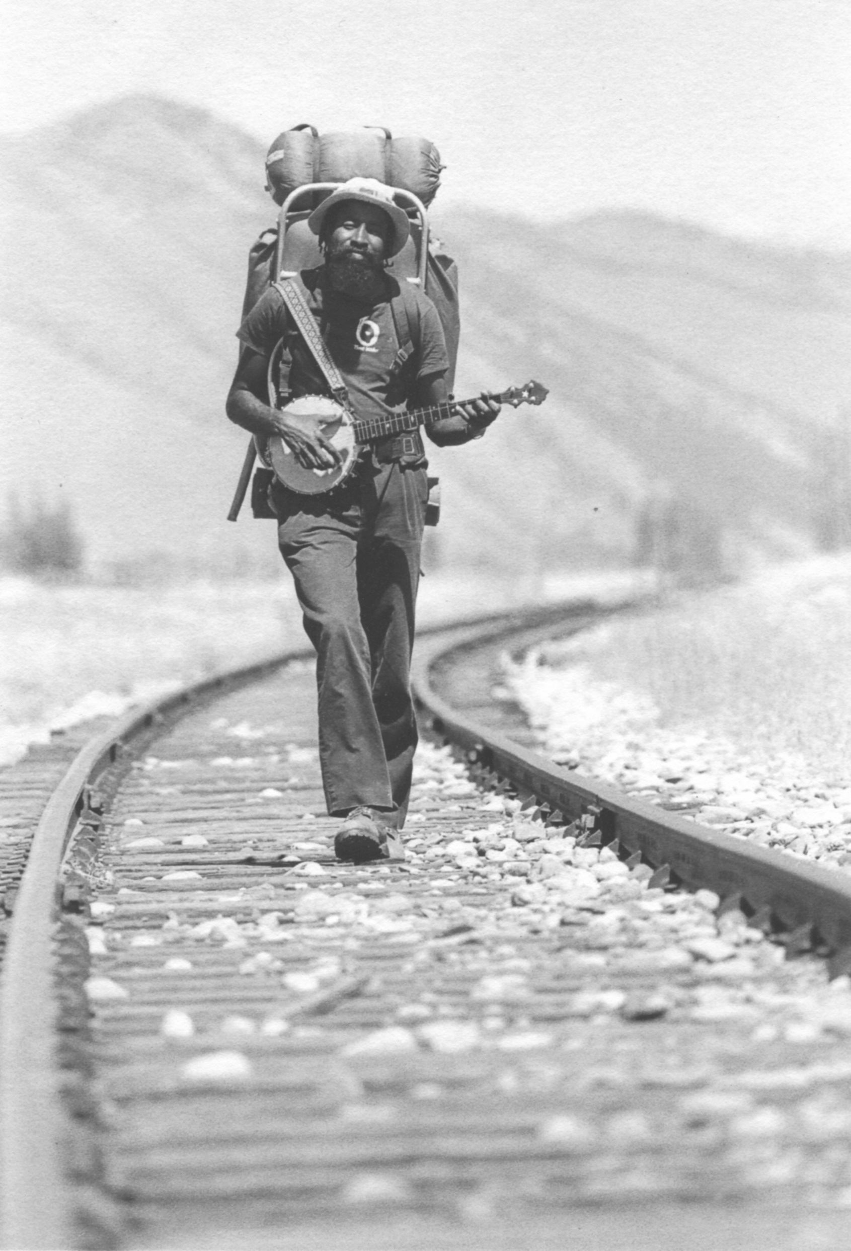 Thus started his decades-long journey traveling across America on foot. While under his vow of silence, he used his banjo and his hands to express himself. He earned the nickname, “the Planetwalker.”