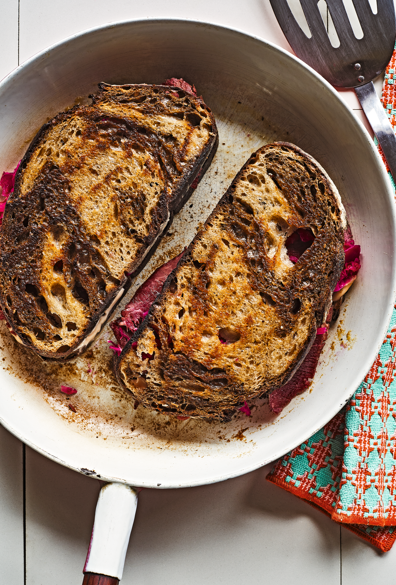 Bake Immediately cover the bread with the inverted pot for a lid and load it back into the oven. Bake for 15 minutes. Remove the combo cooker from the oven and set on the stovetop. Remove the lid (be careful of hot steam) and reduce the oven temperature to 475°F. Return the bread, still on the skillet portion of the combo cooker, to the oven and bake another 15 to 20 minutes, or until the loaf is deeply browned, reaches an internal temperature of 190°F, and sounds hollow when tapped on the bottom. Carefully remove the bread from the skillet and cool completely. Store for up to 5 days, cut-side down, in a paper bag tucked inside a cloth bag.