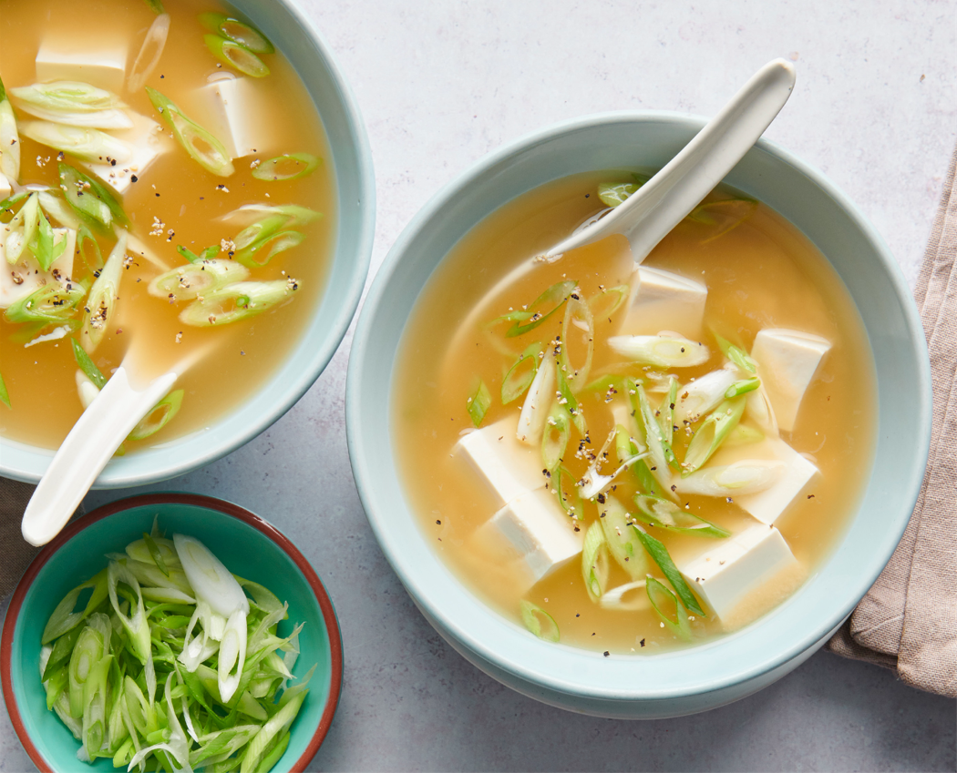 3. Reduce the heat to low and add the tofu to the miso broth. Heat through just enough to warm the tofu, 1 to 2 minutes.