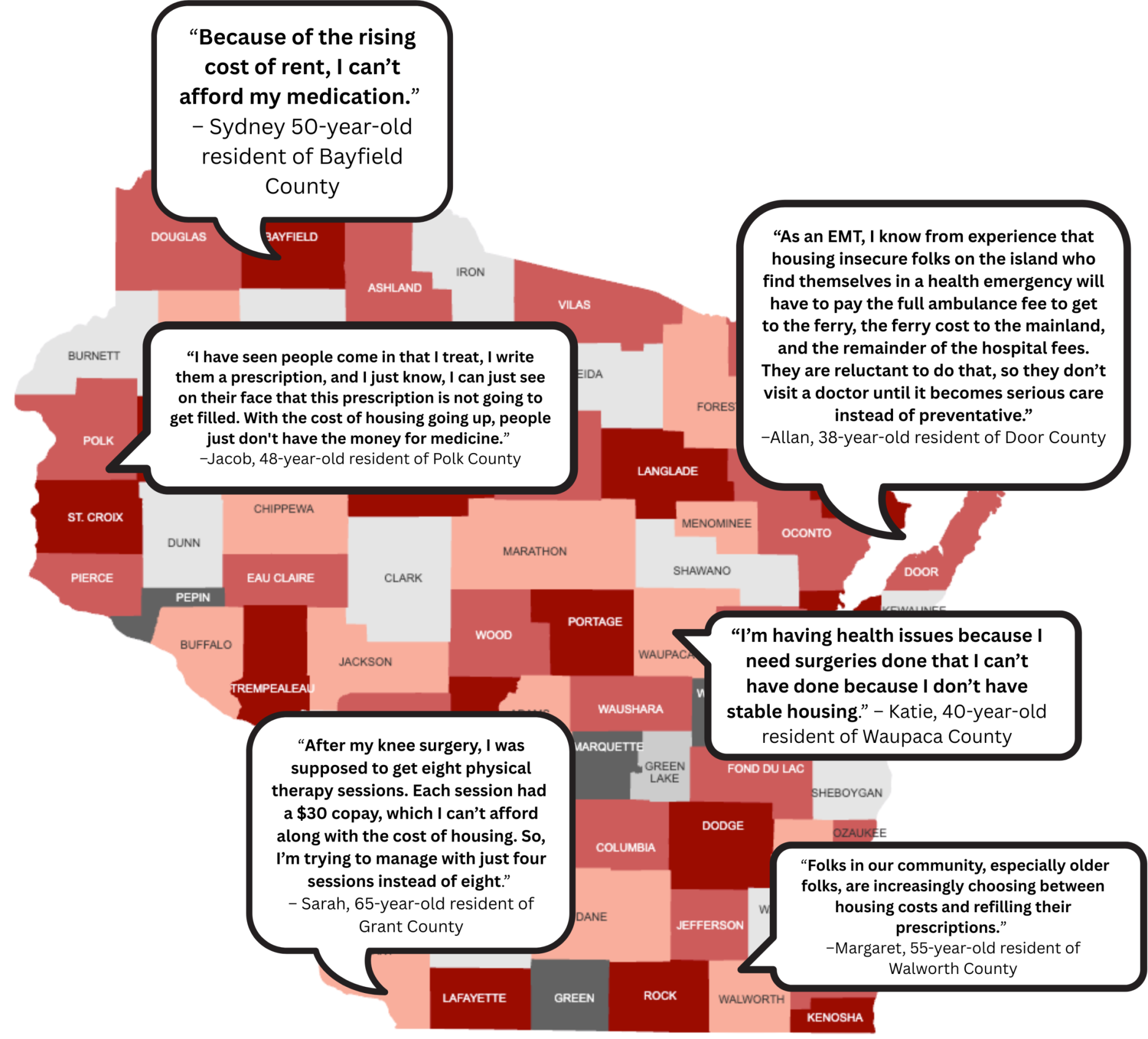 Gaede said issues around delayed health care arose organically from her interviews with Wisconsinites. She said she did not write specific questions for the interviews about health care or hospital care, but asked broadly how housing stress impacts health.
