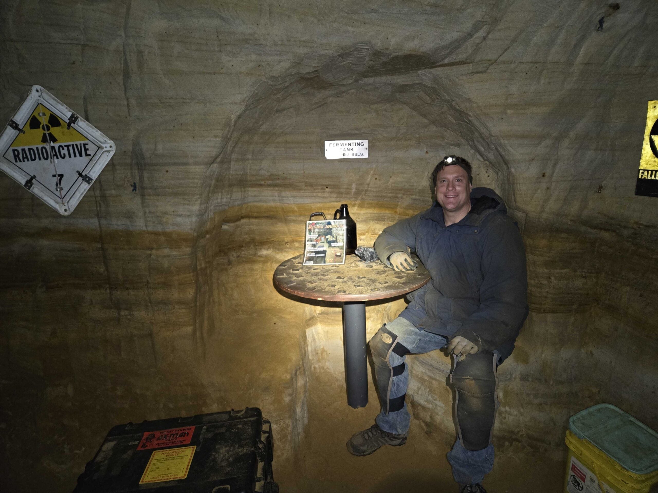 Eric says there are a few ways to enter the tunnels. There is a door marked as an exit and then what he calls the “intended visitor experience.” I choose the latter. We put on knee pads and headlamps. Eric turns the generator on, to provide power to collaborator Dave Gerboth for tunnel chiseling later in the day.