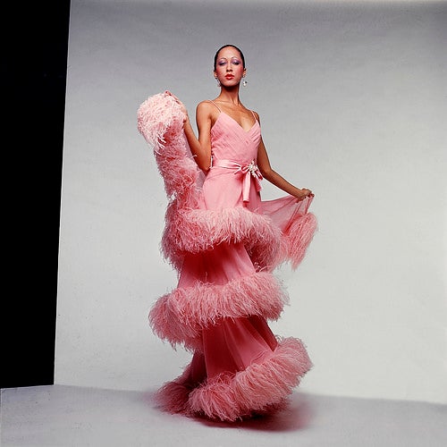 Evening ensemble, fall/winter 1974–75 Silk chiffon, ostrich feathers