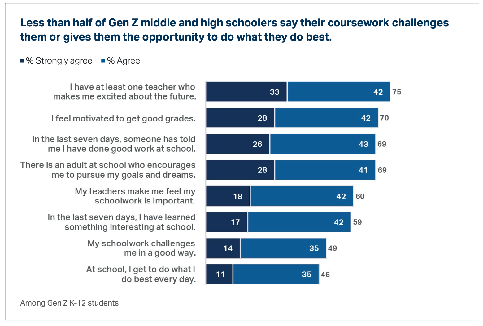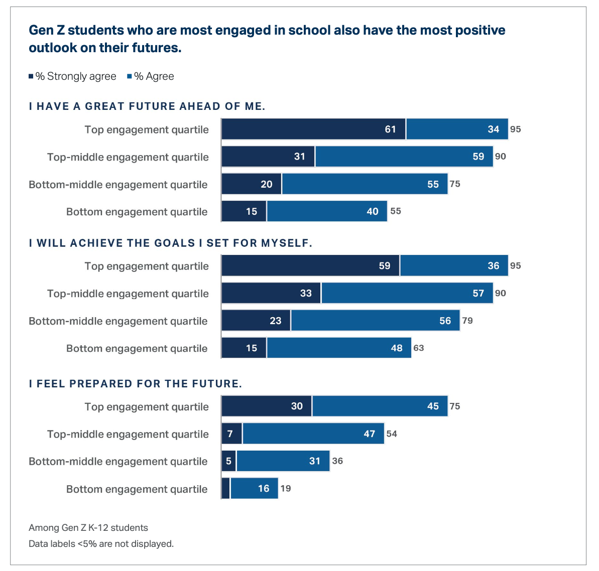 “The students who are most engaged in school are more than four times as likely as the least engaged students to strongly agree they have a great future ahead of them and are 10 times more likely to strongly agree they feel prepared for the future,” the survey found.