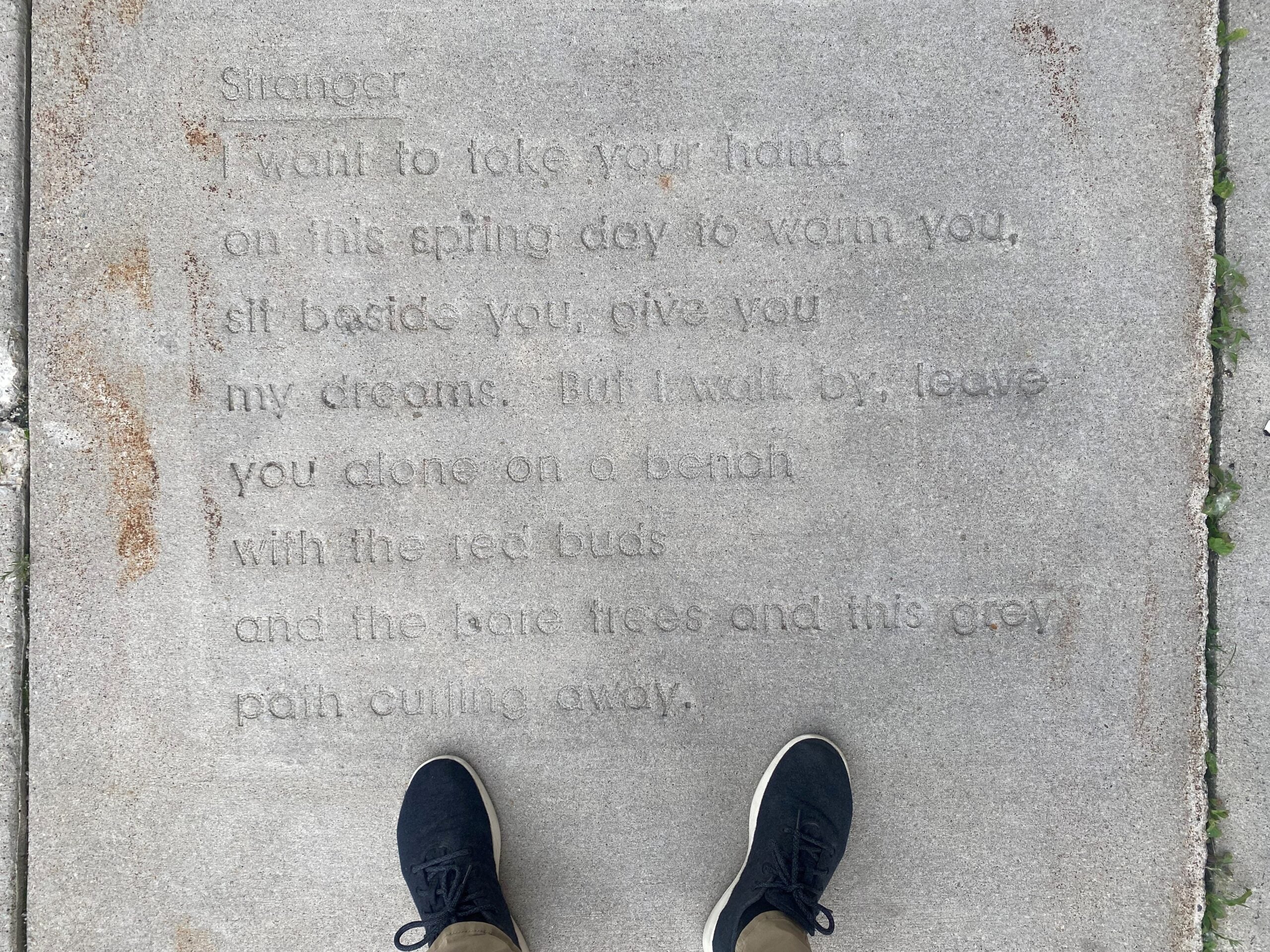 “It’s a nice thing to be out on a walk and find a poem on the sidewalk,” he said. “Every time I do, I pause. I read the poem, and I think about what it means to me that day while I’m walking.”