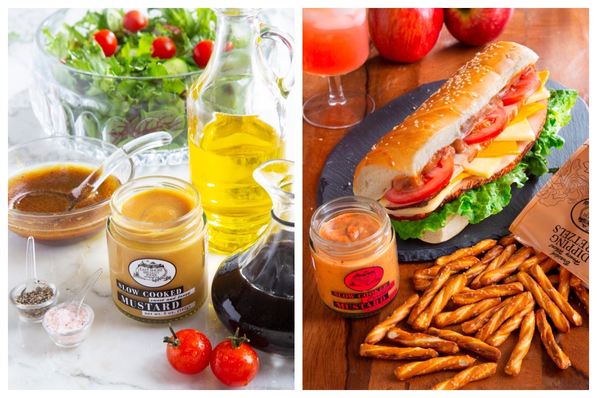 Over the years, East Shore’s lineup has expanded to include several dipping mustards and fruit mustards like cherry and cranberry, with local ingredients sourced from Country Ovens in Door County. Because of the slow-cooking process with egg, the texture ends up a bit more “custard-like” and spreadable, Mesching said. She loves how versatile the mustards are in the kitchen.
