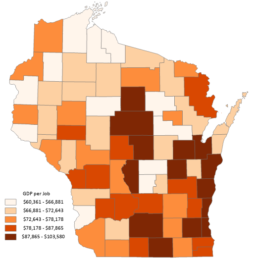 Dane, Waukesha and Milwaukee counties had the highest rates of GDP per worker in Wisconsin, but all three were below the national average, according to the report.