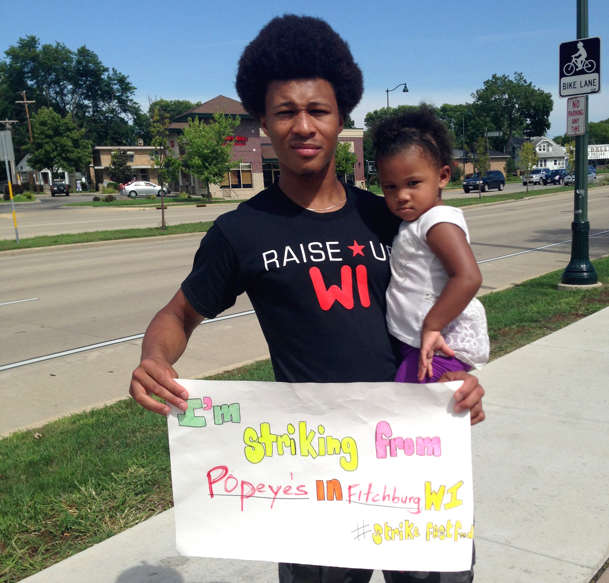Motise Reynolds, a 20-year-old employee at Popeye’s in Fitchburg, was one of the workers who joined the strike. He currently makes $8 an hour.