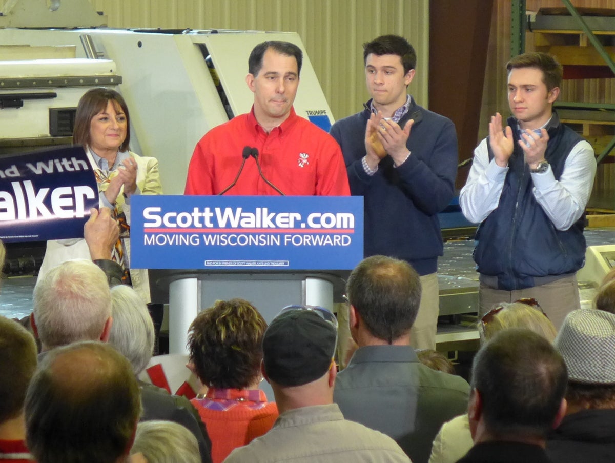 He made several stops throughout the state, beginning his day at a manufacturing plant in the village of Dane north of Madison, where Walker said he was proud of his record of lowering property taxes: “In fact, they’re not only going to be lower in December 2014, they’re going to be lower this December than they were in December of 2010,” he said. “How ’bout that?”