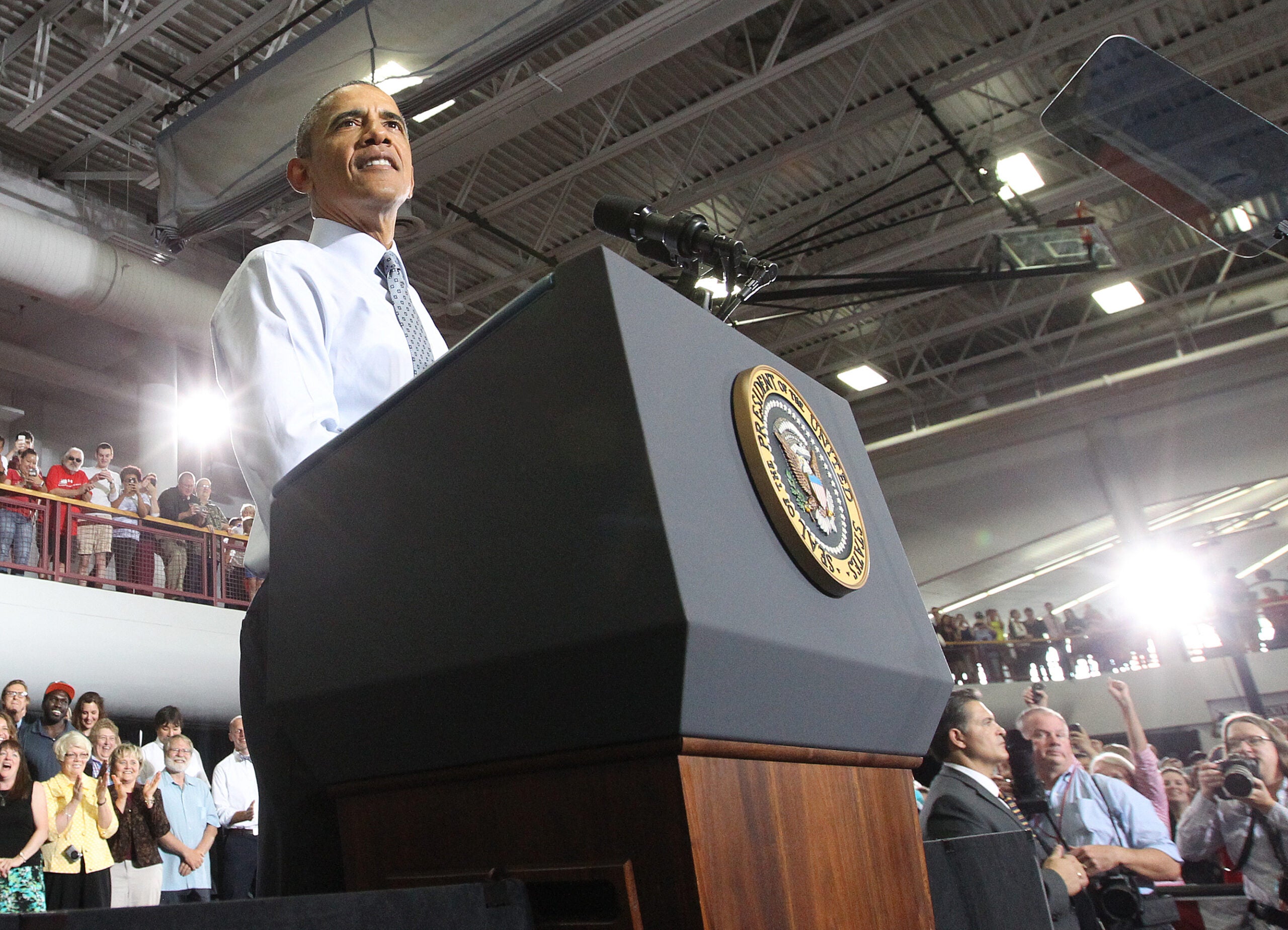 “Give them the tools they need to earn higher wages and better jobs, keep our businesses the most competitive. Invest in research. Build our roads. Build our bridges. That’s how we’re going to help middle-class families succeed,” said Obama.