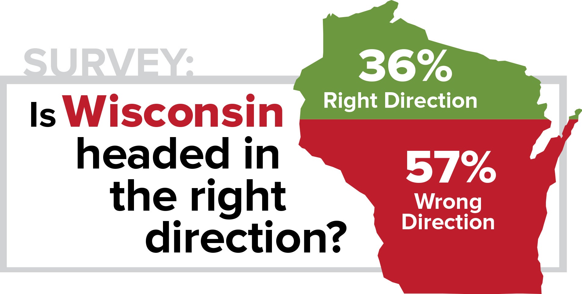 Numbers from the most recent Wisconsin Survey show 57 percent of respondents think the state is moving in the wrong direction — the highest figure in more than a decade — while just 36 percent said they were pleased with Wisconsin’s trajectory.