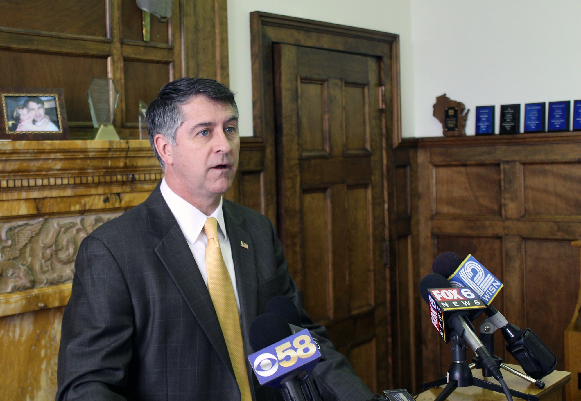 State Rep. Cory Mason announces his run to fill Dickert’s seat. David Cole/WPR