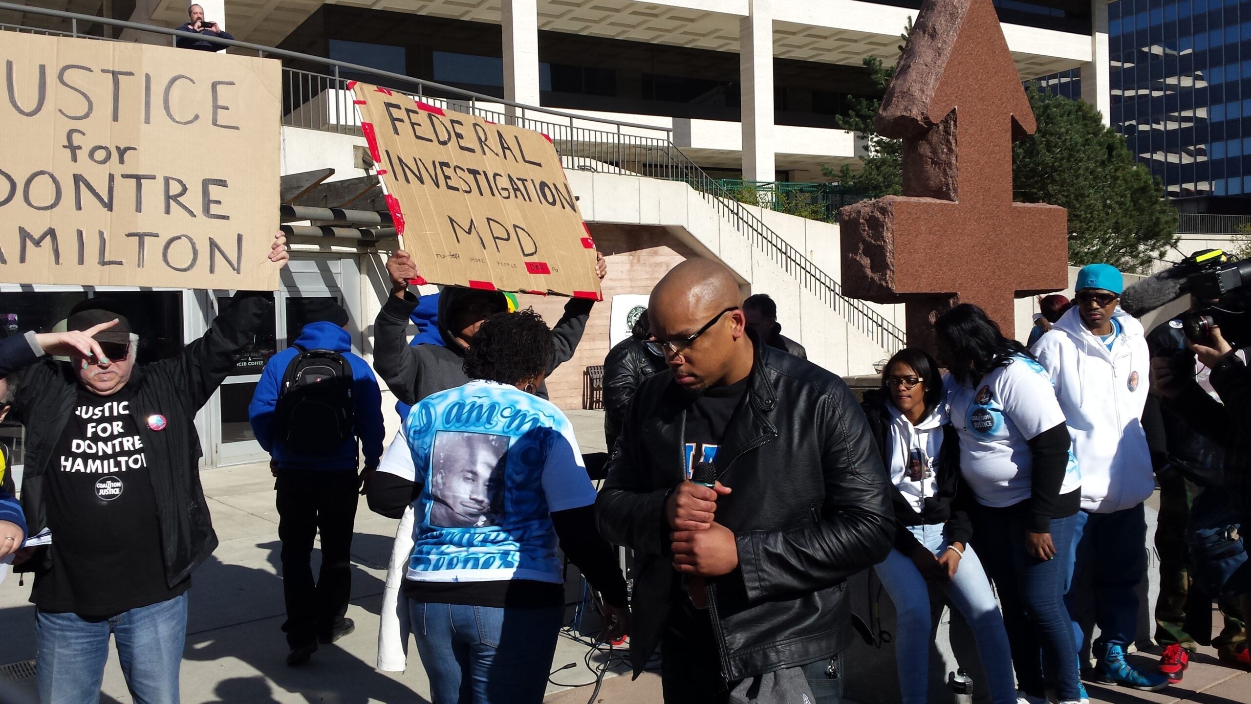 Dontre’s brother Nathaniel told the crowd that the now-fired officer Christopher Manney shook the city awake, “to say no more police brutality, no more injustice, no more police officers not being held accountable.”