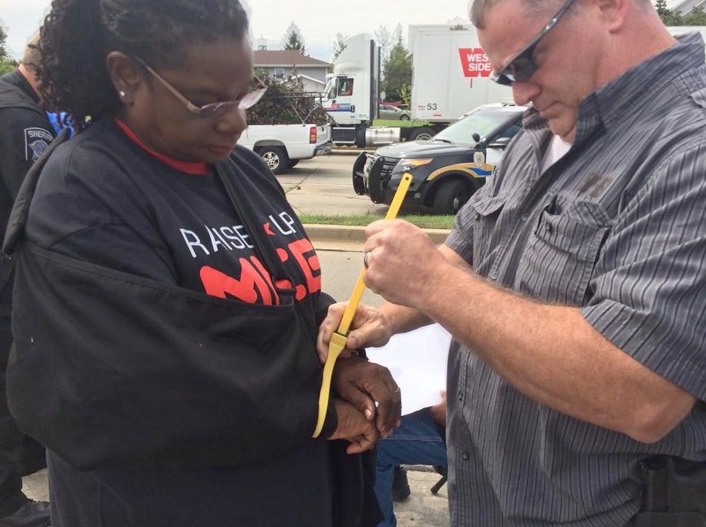 Twenty-five other people were also arrested at the Milwaukee protest, which was part of a national fast food workers’ strike for higher wages.