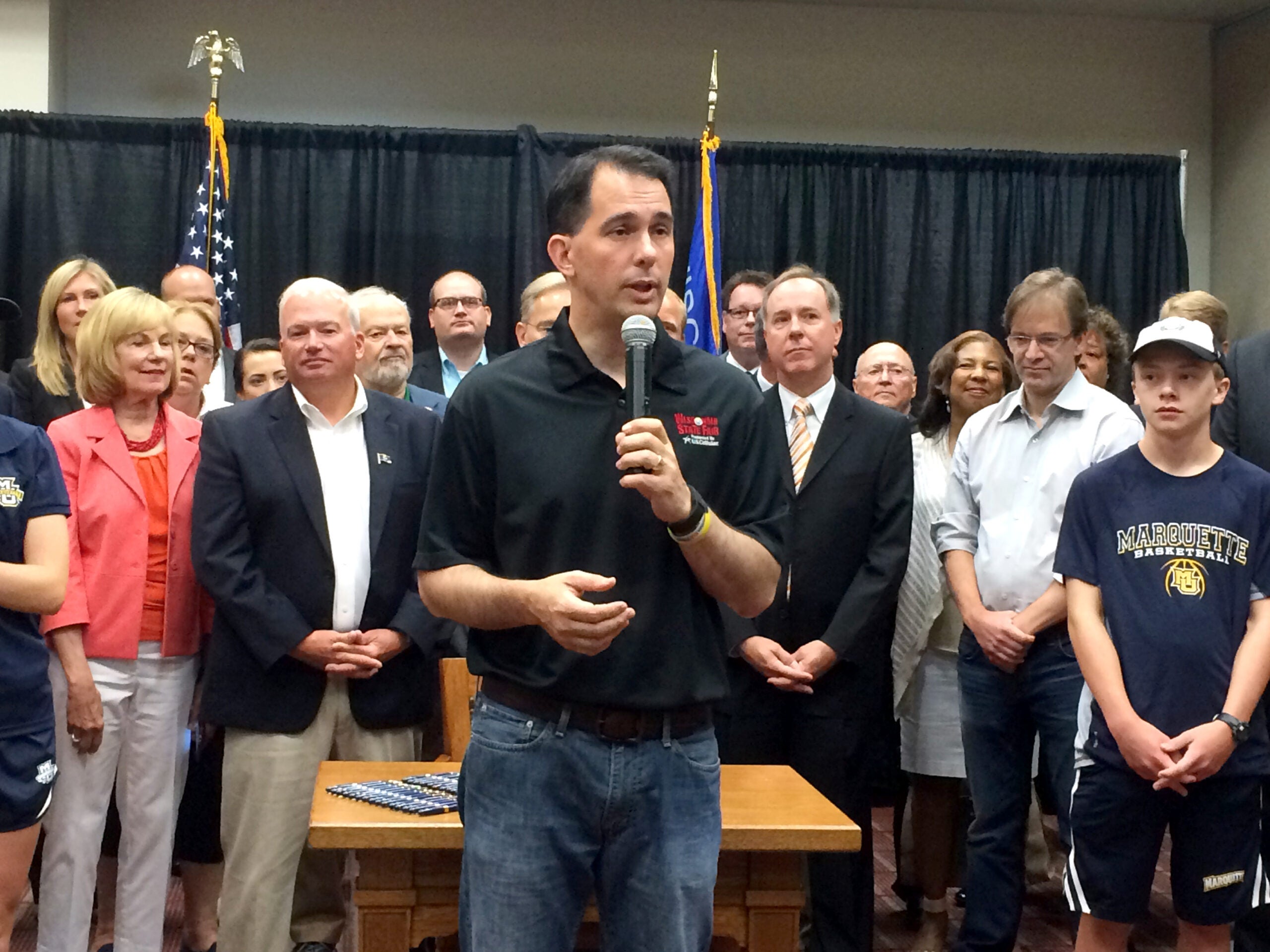 At a press conference at the State Fair Park Wednesday, Walker said the arena will also benefit the state as a whole.