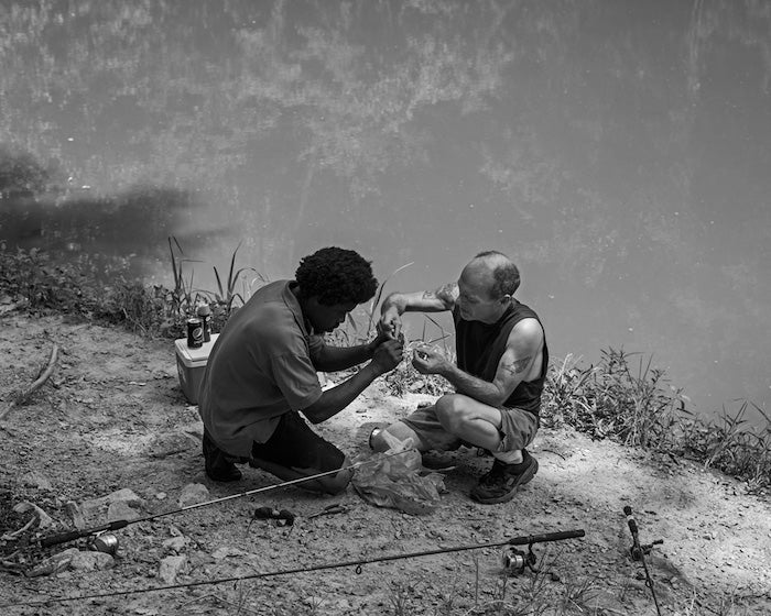 A photo of fishermen next to a lake from Kristine Potter’s collection “Dark Waters.” Photo courtesy of Kristine Potter