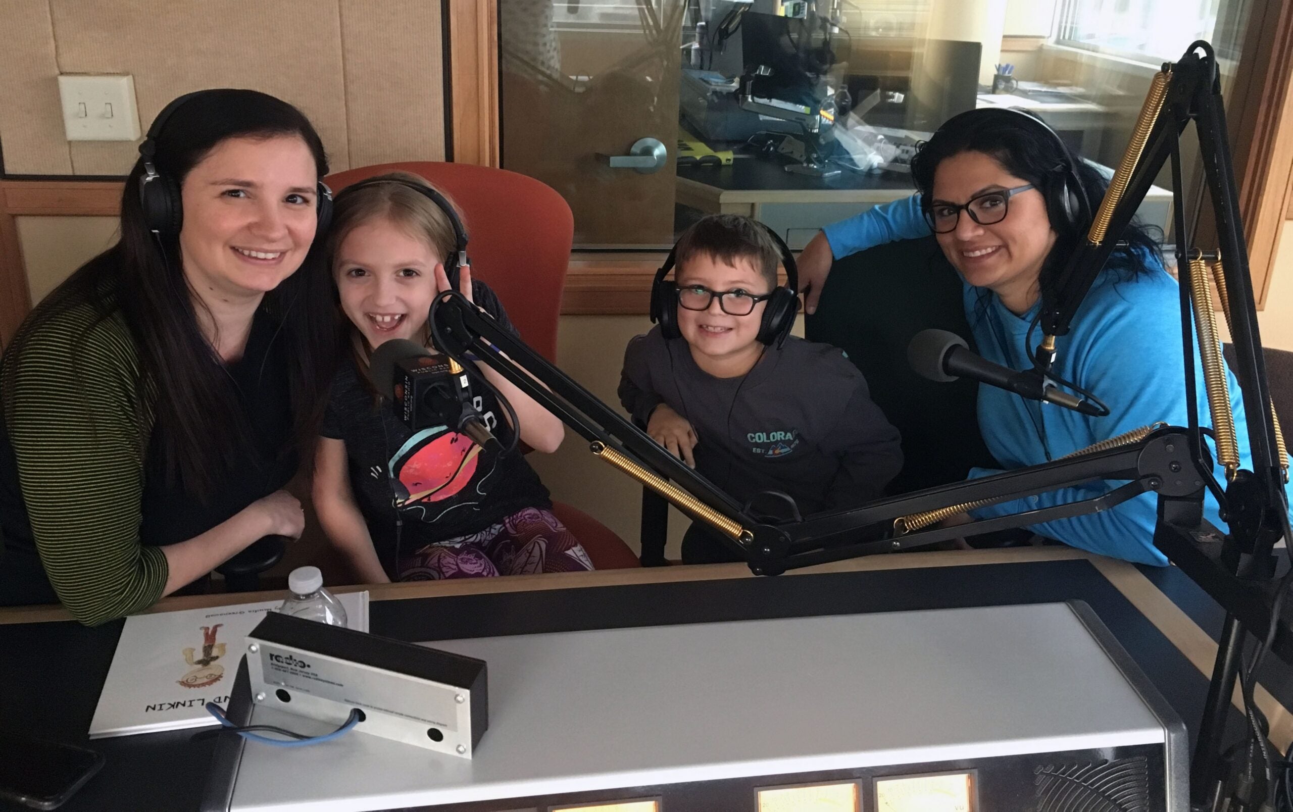 Naudia Greenawalt, second from left, with her mother, Dolores, left, and Linkin Eger, second from right, with his mother, Kelly, right, in WPR's Milwaukee studios.