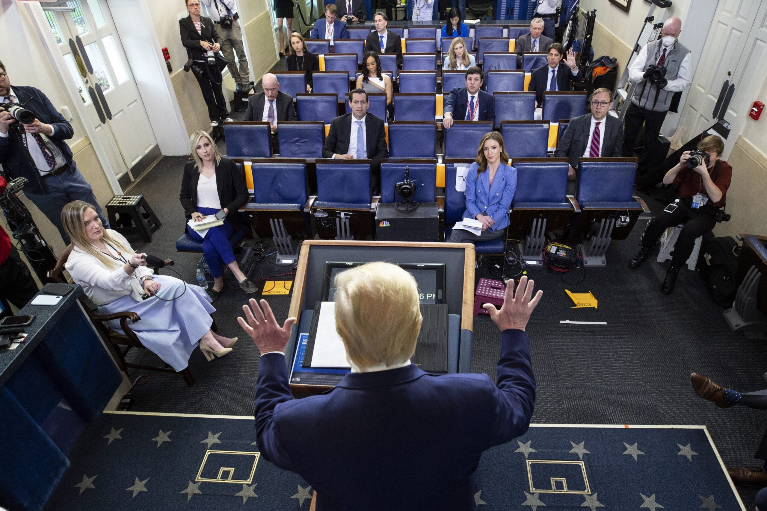 President Donald Trump speaks about the coronavirus in the James Brady Press Briefing Room of the White House, Monday, April 6, 2020, in Washington. Alex Brandon/AP Photo