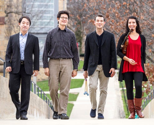 Pianists Kangwoo Jin and Luis Alberto Peña, percussionist Garrett Mendelow, and violinist Paran Amirinazari will perform at the Symphony Showcase concert on Sunday, February 14th, at 7:30pm in Mills Hall. More information on these musicians is available here. Tickets are available here.