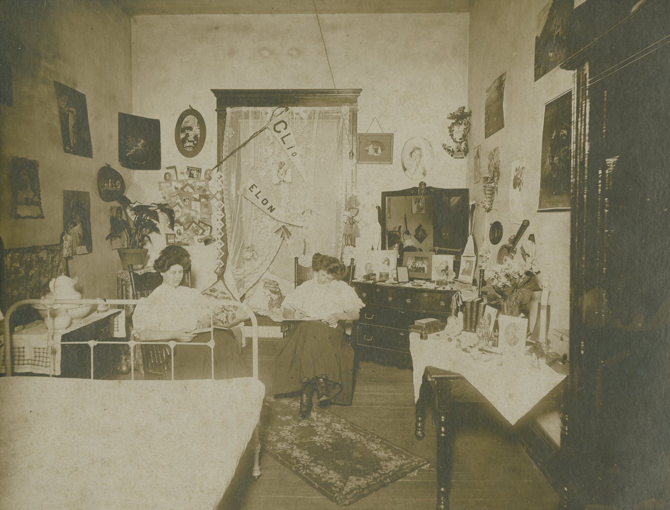 College goals were a little different for these women, pictured in their dorm in 1908.