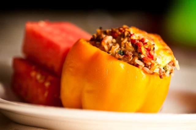 This riff on one of the most beloved of comfort foods is greater than the sum of its parts. To achieve a flavorful, creamy mac and cheese that is not so laden with fat, it’s about balance. By using a more potent cheese like gruyere, you can still get good flavor while using a smaller amount of cheese, according to Bishop. And, mixing low-fat milk and cream cheese — which is also low in fat — creates a velvety and creamy sauce that keeps the fat in check.