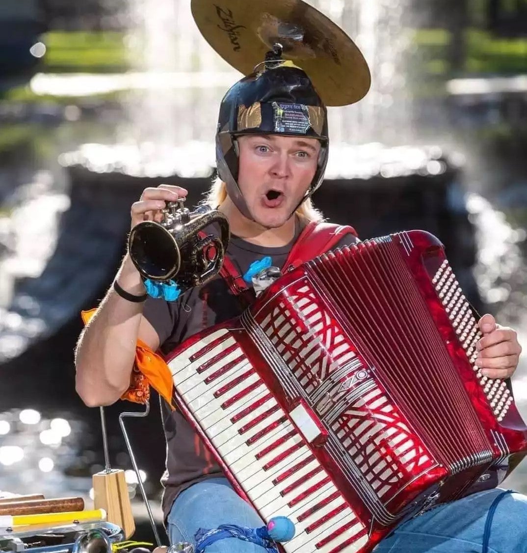 Also, he’s a member of a 23-piece band — its only member. Steve Solkela is a classically trained musician who has put that education to work playing an impossible number of instruments at once. Making his shows even more interesting (and hilarious) is what he plays: songs accentuated by a mix-up of unpredictable prop comedy, dangerous stunts, and carnival-like musical style. Solkela shares his talents with Washington ahead of his FinnFest performance on Saturday.