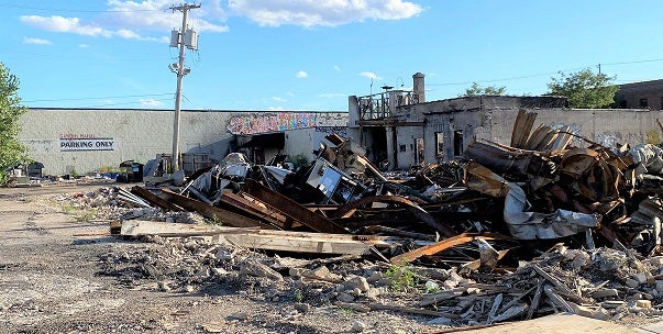 Site of the El Nuevo Rodeo restaurant and club in Minneapolis shortly after the riots that leveled the establishment following the death of George Floyd in police custody in May 2020. Photo courtesy Julia Cheng for Wisconsin Public Radio.