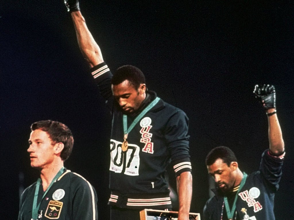 On Oct. 16, 1968, as the national anthem began to play inside Mexico City’s Olympic stadium, John Carlos raised his left hand in a fist. Having moments ago taken the bronze in the men’s 200 meters, Carlos and his teammate, first-place finisher Tommie Smith, took the podium with black socks on their feet and stood with their fists in the air to protest racial injustice across the world.