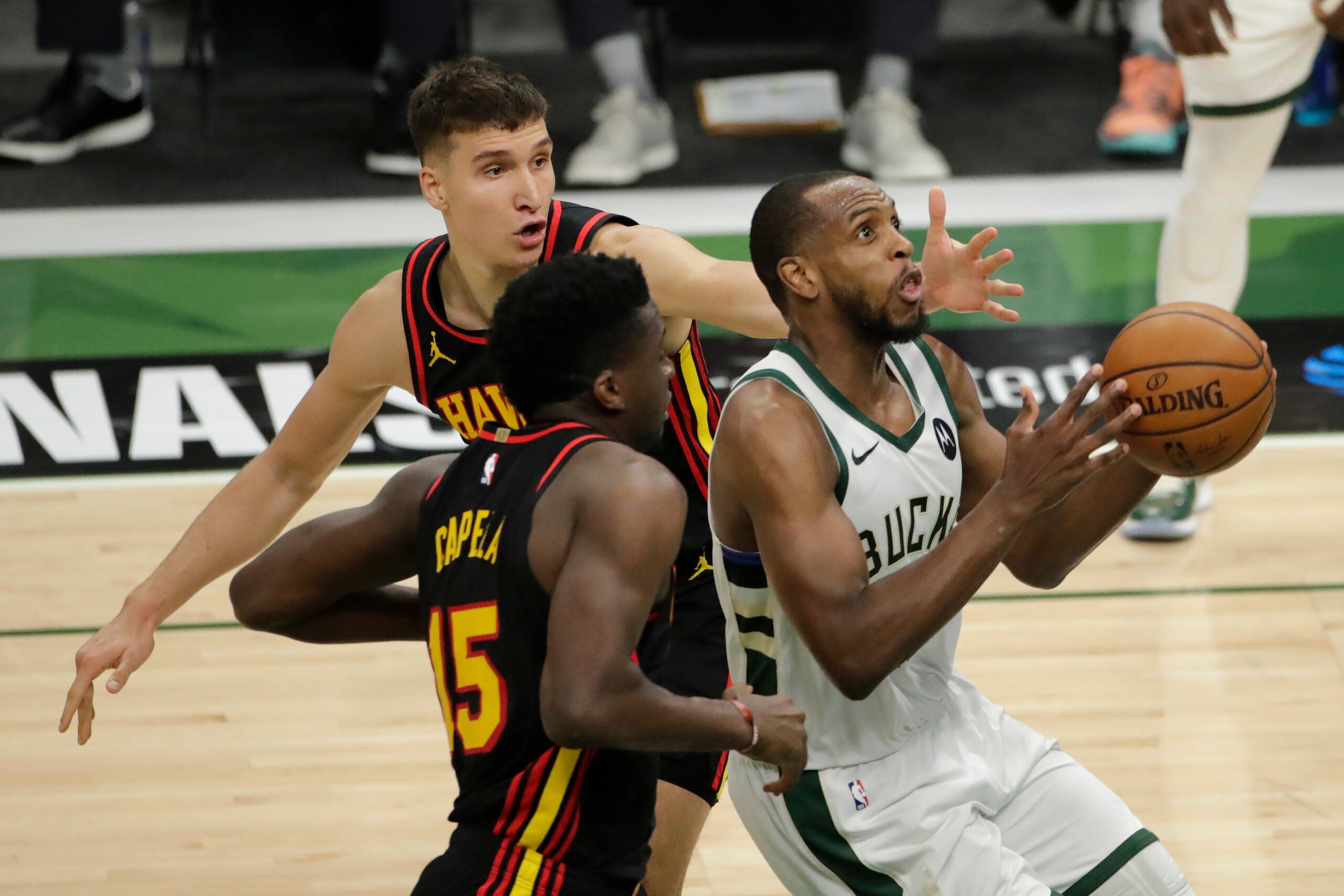 Bogdan Bogdanović led Atlanta in scoring with 28 points. He nearly played in Milwaukee this season, but a sign-and-trade deal with the Sacramento Kings fell apart, and the shooting guard signed with the Hawks.