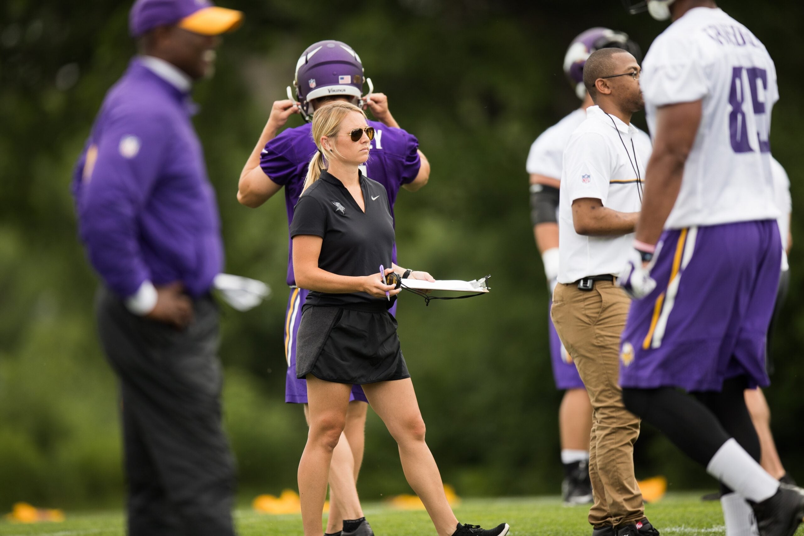Kleine grew up in Sheboygan, just an hour from Lambeau Field. A multi-sport athlete as a kid, Kleine got into football because of Brett Favre. He’s still her all-time favorite player. But she’s shifted her rooting allegiance from the Packers to the Vikings. After all, as the team’s manager of player personnel, it’s her job to help Minnesota build a winning roster.