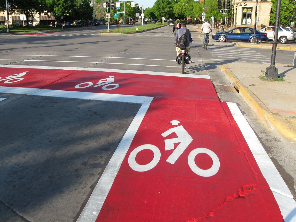The only other city in Wisconsin to have bike boxes is Madison, which saw them installed in 2010.
