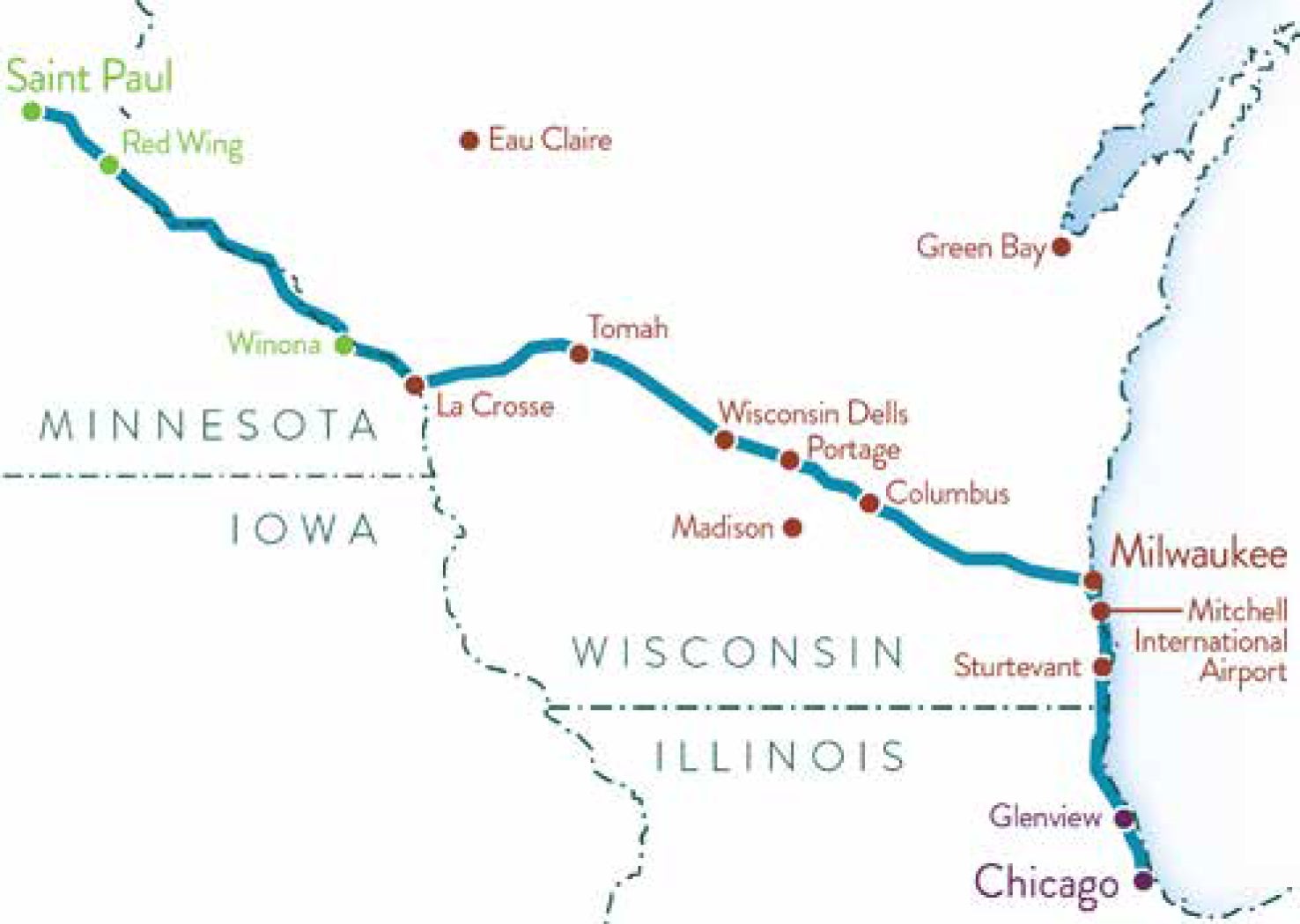 The TCMC corridor already exists. It is a 411-mile rail corridor connecting Minneapolis and St. Paul to Milwaukee and Chicago. It provides service to smaller cities including La Crosse, Tomah, Wisconsin Dells and Portage.