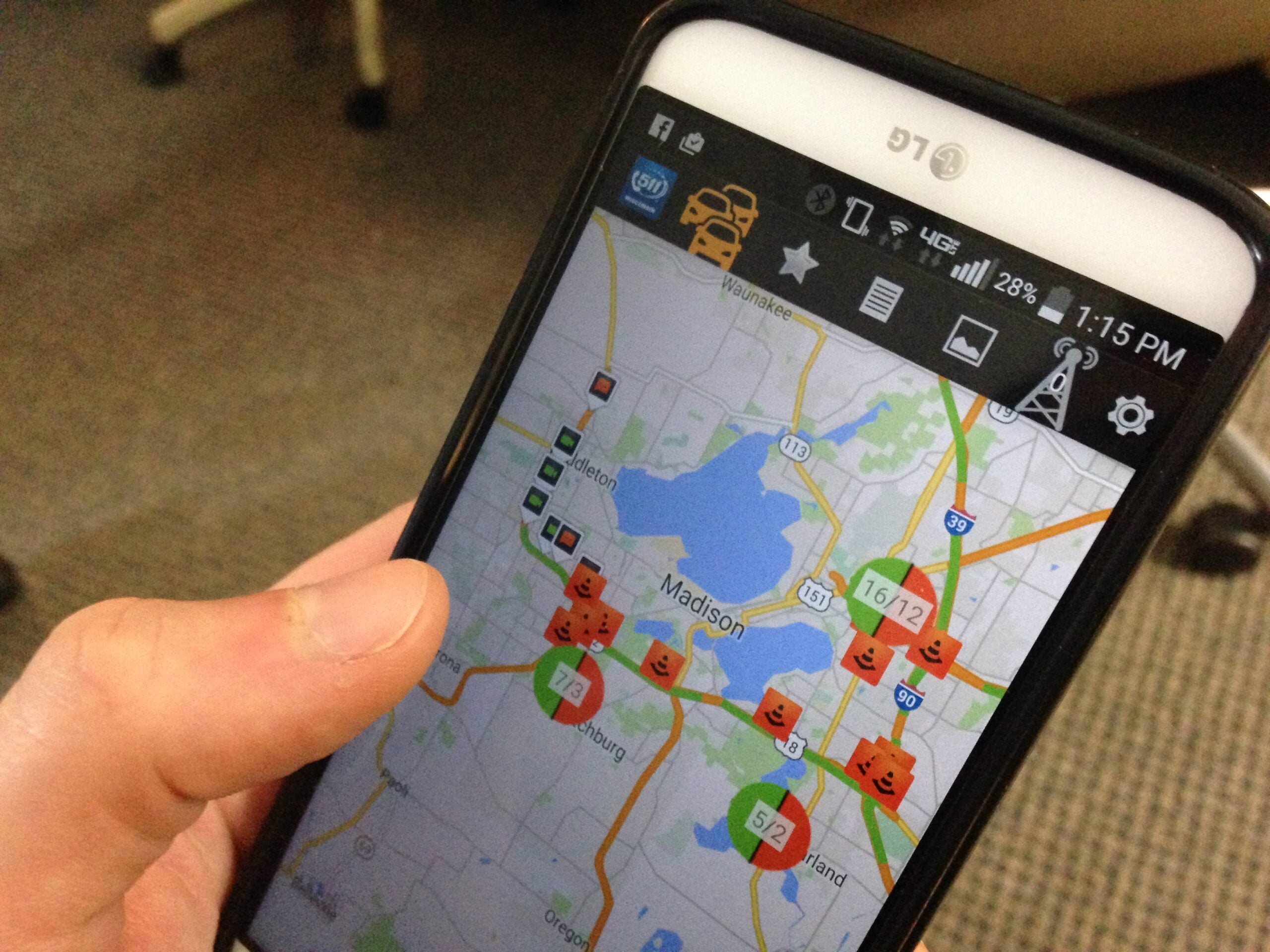 The Wisconsin 511 app can track things from traffic speeds to road closures, and estimates travel times based on those factors. Screenshots by Kelly Wang