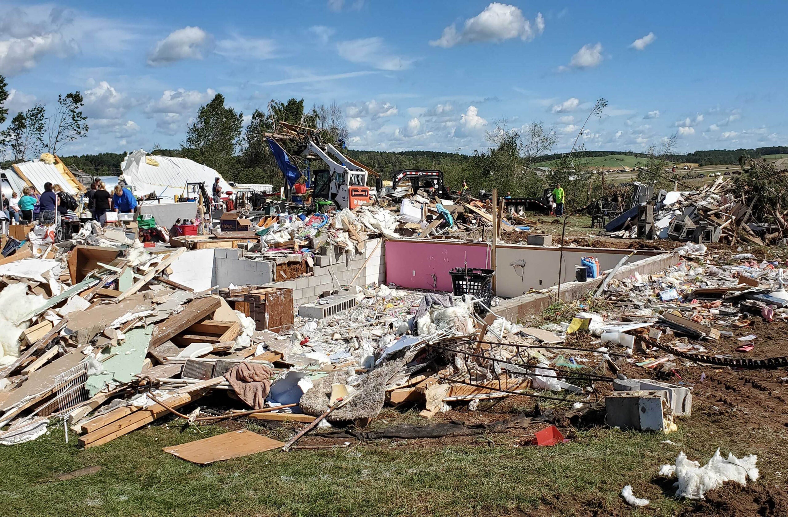 A home near the intersection of 30th Street and Highway 29 in the Town of Wheaton was flattened by a reported tornado Tuesday, Sept. 24, 2019. People were out helping clean up the debris Wednesday. According to neighbors, the home is owned by Dan Hoerel. Rich Kremer/WPR